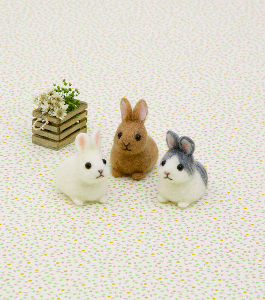 Japanese Needle Felting Kit - Baby Rabbit Trio