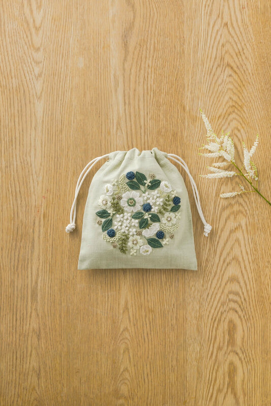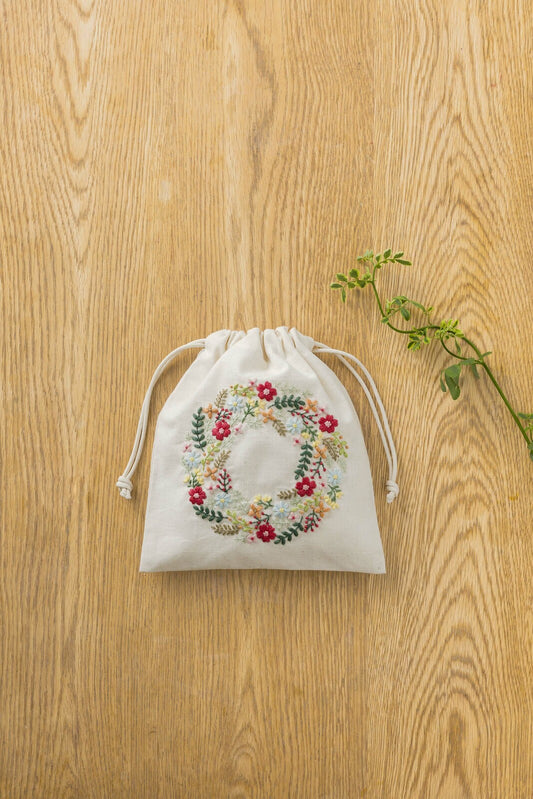 yula Embroidery Kit - Small Flower Wreath Drawstring Bag
