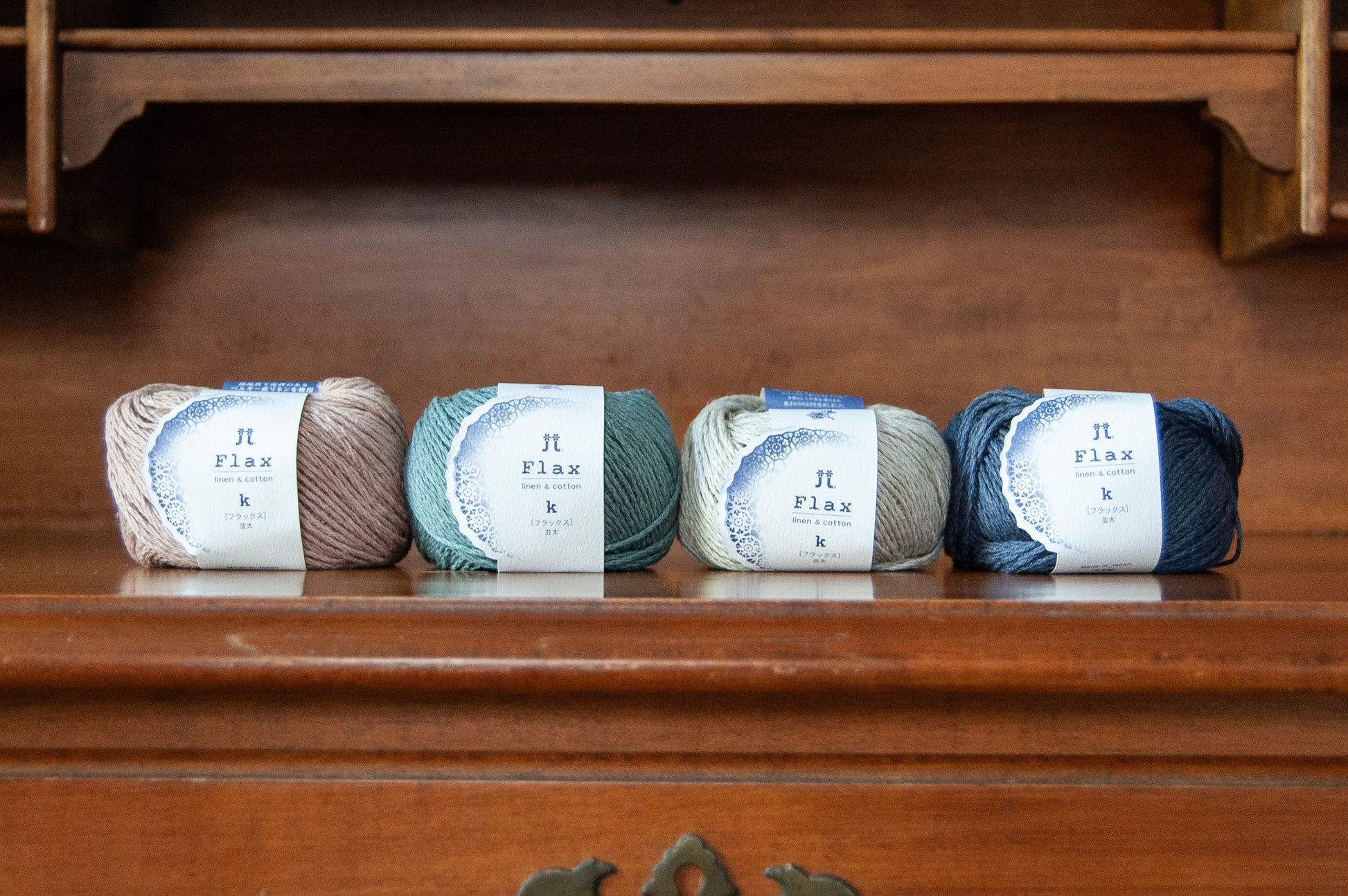Hamanaka's Flax K yarn blends the softness of cotton with the lightness and coolness of linen, making it ideal for warm weather. The Flax yarn series is made with Belgian linen, known for its high quality. This yarn has a sturdy quality that would make it particularly suited for bags, accessories, and open work.